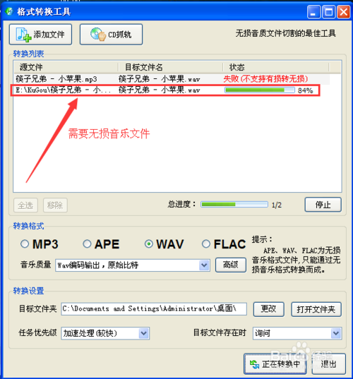 酷狗(KuGou)是国内最大也是最专业的P2P音乐共享软件,通过酷狗还能进行音频格式的转换(MP3、APE、WAV、FLAC之间转换),下面以MP3转其它格式为例说明具体步骤。